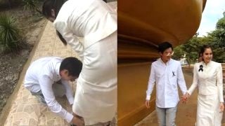 (คลิป) กอล์ฟ พิชญะ ก้มใส่รองเท้าให้ ขวัญ อุษามณี ขณะควงกันไปทำบุญทอดกฐิน แฟนคลับจิกหมอนหนักมาก