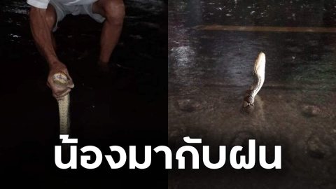 เตือนภัยหน้าฝน!! น้องมากับฝน ฝนตกหนัก งูโผล่หัว ออกจากรูท่อระบายน้ำ