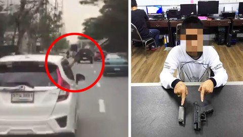 อยู่บนถนนกร่างอย่างเทพ พอคลิปถูกแชร์โร่มอบตัวอย่างจ๋อย หนุ่มนักเลงชูปืนใส่คู่กรณี