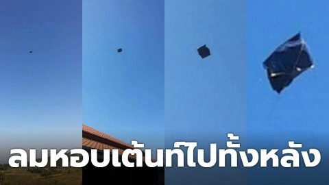 หนุ่มเซ็ง! ไปเที่ยวกางเต็นท์ โดนลมหอบไปทั้งหลัง