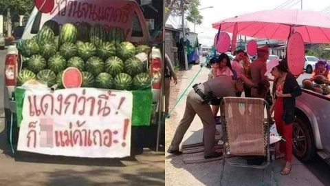 แม่ค้าแตงโมเขียนป้ายแรงสุดๆ ตำรวจให้ปลดออกแล้ว