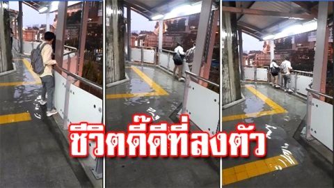 น้ำรอระบาย!!สาวโพสต์คลิป ทางเดินลอยฟ้าแต่ว่ามีน้ำท่วมขังบนสถานีรถไฟฟ้าบีทีเอส
