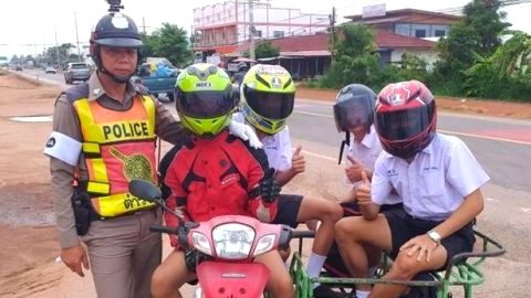 วิถีหนุ่มน้อยไทบ้าน เด็กโคราช พาเพื่อน ขี่มอเตอร์ไซค์พ่วงมาโรงเรียน แต่ไม่ลืมความปลอดภัย