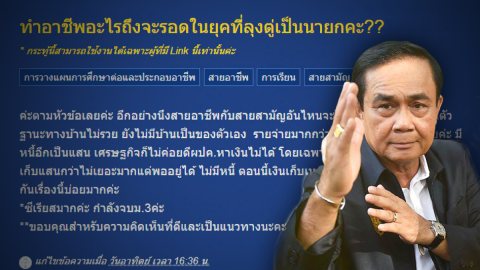 คอมเม้นต์สนั่น!! เมื่อมีคนตั้งกระทู้ถามว่า "ทำอาชีพอะไรถึงจะรอดในยุคที่ลุงตู่เป็นนายกคะ??"