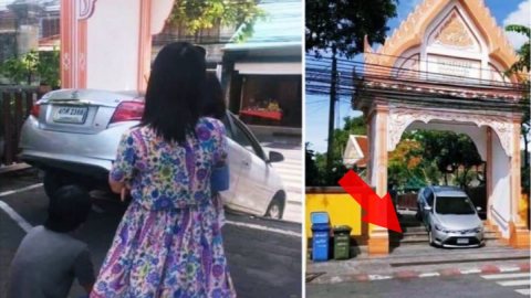 ทำไปได้!! เก๋งนึกว่าทางออกวัด ขับรถลงบันไดติดเเหงก จะสงสารหรือฮาดี