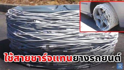 ทำไปได้!! หนุ่มนำสายชาร์จ Apple มาใช้แทนยางล้อรถยนต์ จะวิ่งได้มั้ย