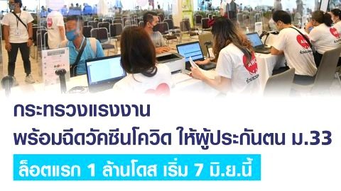 กระทรวงแรงงาน พร้อมฉีดวัคซีนโควิด19 ผู้ประกันตน ม.33 ล็อตแรก 1ล้านโดส เริ่ม 7 มิ.ย.นี้