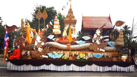 สวยงาม!! #เรือพนมพระ และ คณะนางรำ ญาติธรรมจากสุราษฎร์ธานีเดินทาง1,200 โลเมตร ร่วมงาน บุญเดือน8แห่เทียนเข้าพรรษา118ปี เมืองอุบลฯ