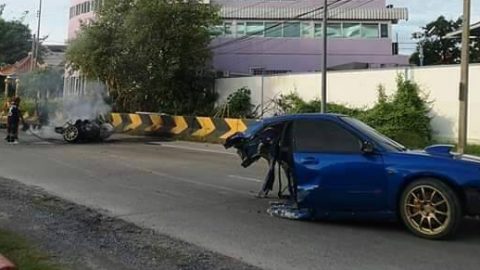 รถแรง!! ชนขอบทาง..ขาด 2 ท่อน ท้ายกระจาย..ยับ..คนขับปลอดภัยดี