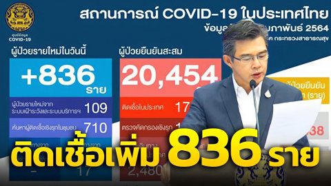 Live! แถลงสถานการณ์ โควิด-19 ติดเชื้อเพิ่ม 836 ราย