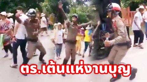 เห็นแล้วยิ้ม ตำรวจเต้นน่ารักเชียว !!เป็นมิตรใกล้ชิดชาวบ้าน ร่วมวงแห่งานบุญ