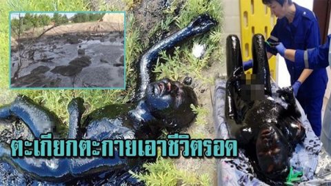 หนุ่มพลัดตกบ่อน้ำมันดิน ตะเกียกตะกายสุดชีวิต โชคดีมีคนมาช่วย หวิดสิ้นชื่อ