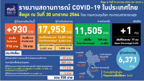 สถานการณ์ โควิด-19 ติดเชื้อเพิ่ม 930 ราย