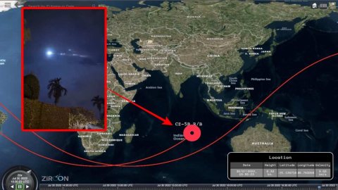 คลิปจรวด CZ-5B ของจีน ขณะตกกลับสู่ชั้นบรรยากาศโลกเหนือเมืองกูชิ่ง รัฐซาราวัก มาเลเซีย
