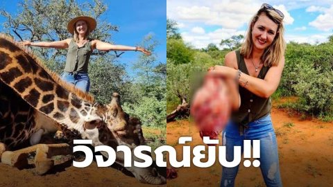 นักล่าสัตว์หญิงชาวแอฟริกาใต้ โพสภาพพร้อมยีราฟ และควักโชว์หัวใจของมัน ซึ่งเป็นของขวัญวันวาเลนไทน์ จากสามีที่จัดทริปให้เธอไปล่า ถูกวิจารณ์อย่างหนัก
