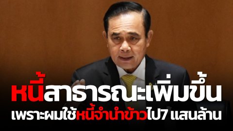 ประยุทธ์ ลั่น ที่หนี้สาธารณะเพิ่มขึ้น เพราะผมใช้หนี้จำนำข้าวไป 7 แสนล้าน เหลือภาระหนี้อีก 2.8 แสนล้านบาท ต้องใช้อีก 12 ปีถึงจะหมด