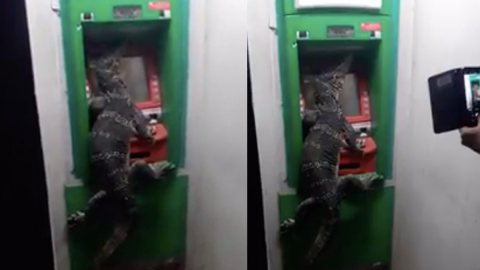 ต๊กใจหมด! เฮียร้อนเงิน!! ตัวเงินตัวทองขนาดใหญ่เกาะตู้เอทีเอ็ม ชมคลิป