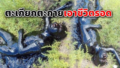 หนุ่มพลัดตกบ่อน้ำมันดิน ตะเกียกตะกายสุดชีวิต โชคดีมีคนมาช่วย หวิดสิ้นชื่อ