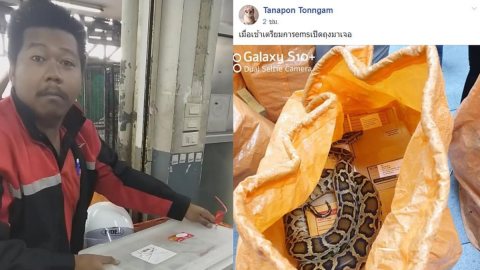 หนุ่มไปรษณีย์ตกใจสุดขีด งูเลื้อยมาอยู่ที่เอว คิดได้ไงส่งงูผ่านไปรษณีย์ น่าสงสารน้องหลาม
