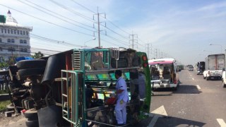 รถพ่วงพุ่งชนสองแถวกระเด็นเสยเละ ตร.หนุ่มยืนเขียนใบสั่งดับสลดใต้ท้องรถ-ชายชราตายด้วย*