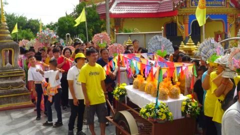 ไอเดียสร้างบุญ..สร้างกฐินเหรียญ 10 บาท น้ำหนักรวม 500 กก. เข้าสู่วัด ทั้งเข็นทั้งเต้น ยอดกฐินนับล้านบาท