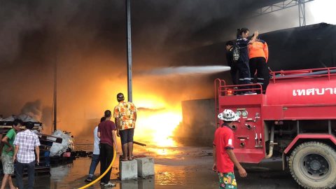 ข่าวด่วน! เกิดเหตุไฟไหม้รุนแรง โรงงานรีไซเคิลพลาสติกและอลูมิเนียม ระดมรถดับเพลิงกว่า 10 คัน