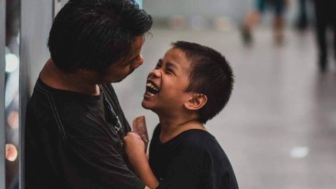 แห่แชร์!! ภาพสองพ่อลูกคุยหยอกล้อกันบนBTS ถึงแม้ไม่มีเงินทองมากมาย ก็มีความสุขได้