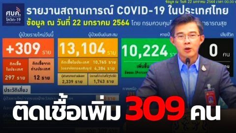 Live! แถลงสถานการณ์ โควิด-19 ติดเชื้อเพิ่ม 309 ราย