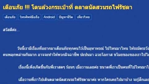 เตือนภัย !!! โดนล้วงกระเป๋าที่ ตลาดนัดสวนรถไฟรัชดา