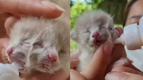 ชาวบ้านฮือฮา! ลูกแมวสองหัวในร่างเดียว