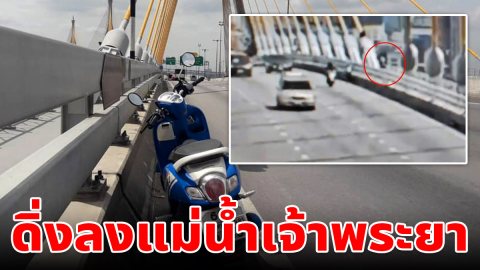 ชายขับจักรยานยนต์ขึ้นสะพานภูมิพล ก่อนดิ่งลงแม่น้ำเจ้าพระยาดับ ต่อหน้าประชาชนข้ามฝั่ง