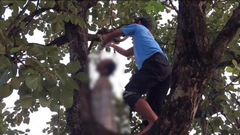 คนเห็นแทบช็อก!หนุ่มกัมพูชา เครียดโรคประสาทตัดสินใจผูกคอตายร่างห้อยบนต้นไม้ริมทาง
