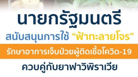 นายกรัฐมนตรี สนับสนุนการใช้ “ฟ้าทะลายโจร” รักษาอาการเจ็บป่วยผู้ติดเชื้อโควิด-19 ควบคู่กับยาฟาวิพิราเวีย