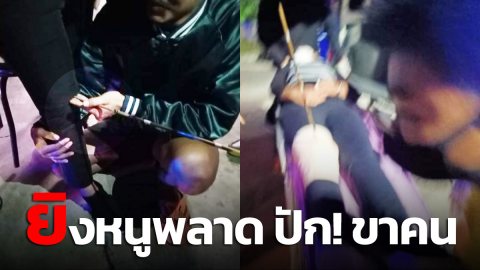 ชาย 2 คนไล่ยิงหนู พลาด!! ปักขาพนง.หญิง เจ็บ