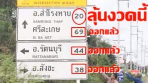 คอหวยฮือฮา!! แห่ดูป้ายบอกทางสุดเฮงที่สุรินทร์ หลังถูกมาแล้ว 3 งวดติด.. ล่าสุดเจ้ามืออั้นเลขนี้แล้ว
