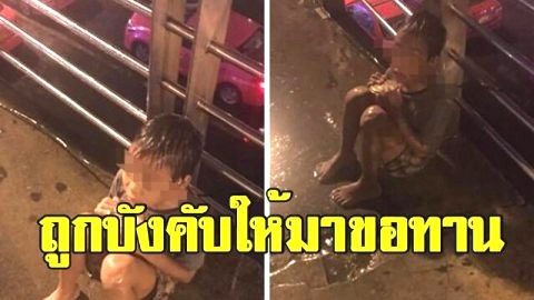 สาวเจอเด็กน้อยนั่งตากฝน ในมือถือกระป๋อง ลั่น ถูกบังคับให้มาขอทาน