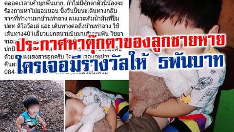สุดยอดพ่อ!! ประกาศตามหา ตุ๊กตาแมว ที่ลูกต้องกอดนอนประจำหายไป จนลูกร้องไห้ไม่เป็นอันกินอันนอน