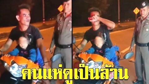 คุณตำรวจเจอคุณพ่อขับรถมือเดียวอีกข้างอุ้มลูก แถมไม่ใส่หมวกกันน็อค รีบเรียกจอดให้ไว