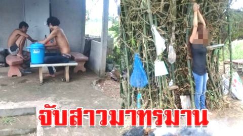 รวบแล้ว หนุ่มโหด จับแฟนขึงกอไผ่ จุดไฟรมควันนั่งก๊งเหล้าดูชิลๆ