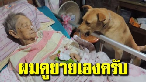 คุณยายวัย 70 ล้มป่วย ลูกหลานไม่ว่างมาเฝ้าไข้ สุดท้ายได้เจ้าตูบแสนรู้ คอยเฝ้าเกาะเตียงไม่ห่าง