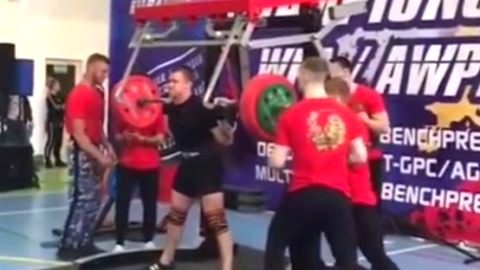 ขนพองสยองเกล้า นาทีนักยกน้ำหนัก แบกเวทหนัก 250 กิโลจนล้มลงขาหัก (คลิป)