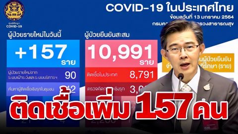 ติดเชื้อลดลง! ไทยพบผู้ติดเชื้อ 157 ราย เป็นผู้ติดเชื้อในประเทศ 132 ราย หายป่วยแล้วสะสม 6,943 ราย