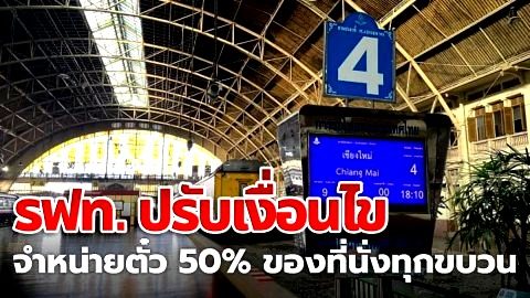 รฟท. ปรับเงื่อนไข การเดินทาง จำหน่ายตั๋วแค่ 50% ของที่นั่งทุกขบวน ตามมาตรการเว้นระยะห่าง