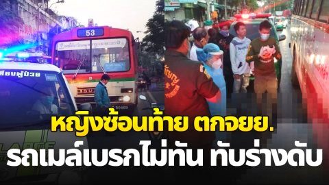สลด! ภรรยาซ้อนท้ายตกมอไซต์ รถเมล์เบรกไม่ทันทับ ดับหน้าตลาดโบ๊เบ๊