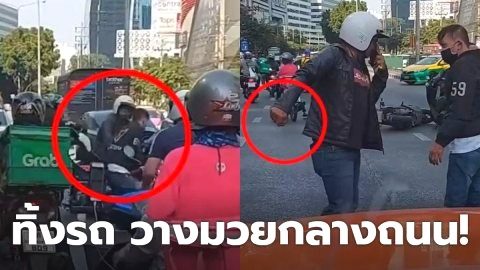 เปิดคลิป จยย.หัวร้อน ทิ้งรถวางมวยกลางถนนรัชดาฯ ซุกมีดพกทำร้ายคู่กรณี