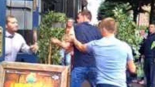 แก๊งค์หนุ่มขี้เมาห้าวจัด!! ชี้หน้าด่าหาเรื่องคนเฝ้าหน้าร้านพร้อมรุมเข้าไปต่อย แต่แล้วก็ต้องถอยเมื่อเจอของแข็งเข้าอย่างจัง!!(คลิป)