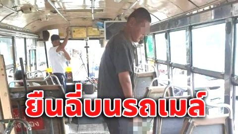 เกิดโกลาหลบนรถ..หนุ่มเร่ร่อน ไม่พอใจ ทำลายข้าวของ ยืนฉี่บนรถเมล์