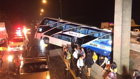 ด่วนอุบัติเหตุ รถทัวร์สาย กรุงเทพ-บึงกาฬ เสียหลักลงล่องเกาะกลางถนน เมื่อตอน 2 ทุ่มวันนี้