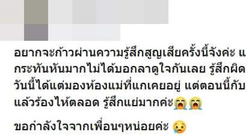 สาวโพสต์เศร้า! แม่เสียแบบกระทันหัน..สูญเสียครั้งยิ่งใหญ่