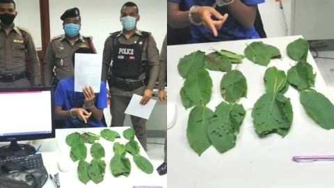 ตำรวจรวบหนุ่ม พบของกลาง..ใบกระท่อม